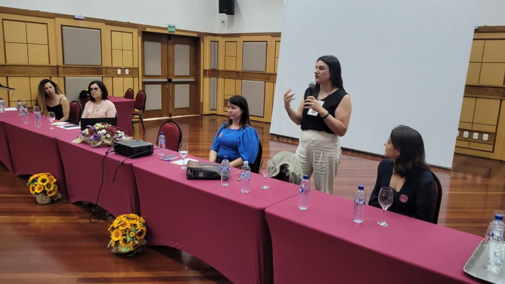 Na sequência, a palestra “Violência no trabalho e o enfrentamento pela ação sindical”, ministrada por Crystiane Peres, supervisora do DIEESE em Santa Catarina, trouxe reflexões sobre as diferentes formas de violência no ambiente laboral e o papel dos sindicatos na defesa dos trabalhadores. Após a palestra, Mariana Freixiela Hernandez realizou a leitura da Carta das Mulheres Sindicalistas Catarinenses.